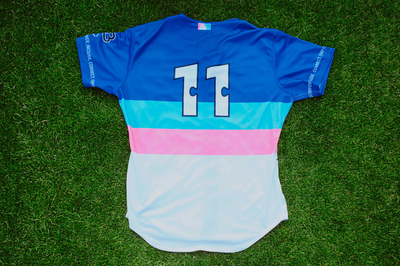 Will Banfield 2026 Game Worn Autism Awareness jersey. Louisville Bats are the Triple-A affiliate of the Cincinnati Reds. All proceeds will be donated to Puzzle Pieces.