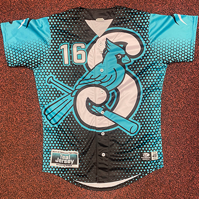 Graysen Tarlow game-worn #16 size 46 Springfield Cardinals Teal Jersey worn during the September 12th and 13th, 2025 games vs the San Antonio Missions benefiting the GYN Cancers Alliance. Size and Number are correct, player subject to change.
