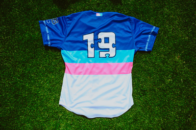 Edwin Arroyo 2026 Game Worn Autism Awareness jersey. Louisville Bats are the Triple-A affiliate of the Cincinnati Reds. All proceeds will be donated to Puzzle Pieces.