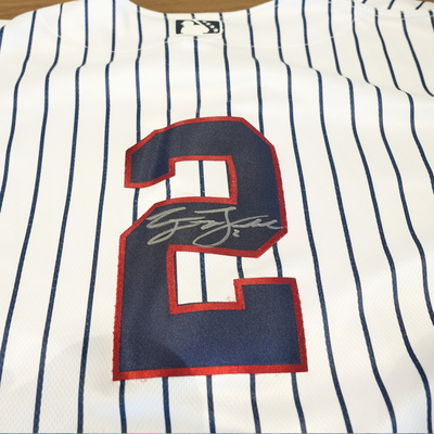 2025 George Lombard Jr Game-Worn Autographed Home Pinstripe Jersey. The auction benefits the Greater Somerset County YMCA and their work to strengthen our community through comprehensive programs and services.