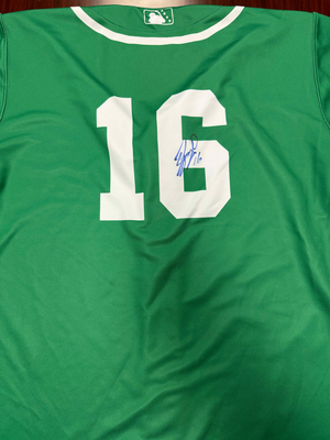 This jersey was signed and worn by pitcher, #16 Christian Suarez during the Tulsa Drillers Go Green Night on Thursday, April 17th 2025 at ONEOK Field. This jersey is a size 46 and proceeds will help support the Friends of the Tulsa Metropolitan Environmental Trust (The Tulsa M.e.t.).