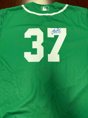 This jersey was signed and worn by coach, #37 Cordell Hipolito during the Tulsa Drillers Go Green Night on Thursday, April 17th 2025 at ONEOK Field. This jersey is a size 48 and proceeds will help support the Friends of the Tulsa Metropolitan Environmental Trust (The Tulsa M.e.t.).