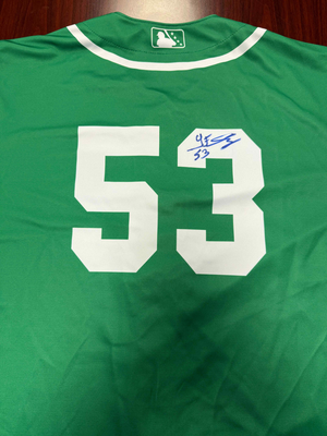 This jersey was signed and worn by catcher, #53 Yeiner Fernandez during the Tulsa Drillers Go Green Night on Thursday, April 17th 2025 at ONEOK Field. This jersey is a size 44 and proceeds will help support the Friends of the Tulsa Metropolitan Environmental Trust (The Tulsa M.e.t.).