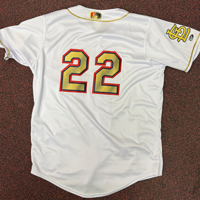 Patrick Anderson #22 size 46 Springfield Cardinals Championship Gold Jersey from the April 7th, April 10th, and April 11th 2026 games against the Tulsa Drillers benefiting the Springfield Sports Commission.