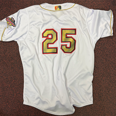 Elvis Rodriguez #25 size 50 Springfield Cardinals Championship Gold Jersey from the April 7th, April 10th, and April 11th 2026 games against the Tulsa Drillers benefiting the Springfield Sports Commission.