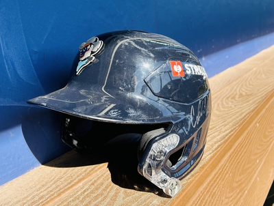 #32 Collin Price Game used Space Cowboys helmet, autographed.