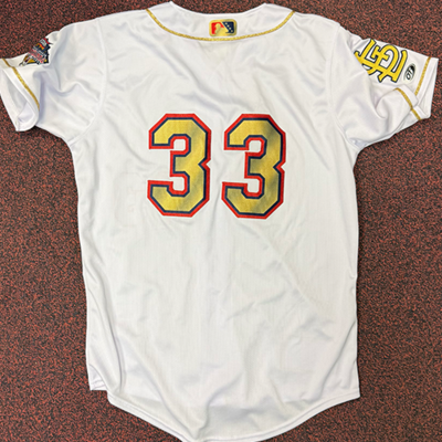 Michael Watson #33 size 46 Springfield Cardinals Championship Gold Jersey from the April 7th, April 10th, and April 11th 2026 games against the Tulsa Drillers benefiting the Springfield Sports Commission.