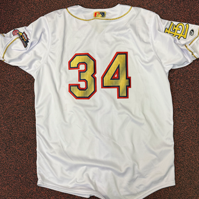 Carlos Linarez #34 size 48 Springfield Cardinals Championship Gold Jersey from the April 7th, April 10th, and April 11th 2026 games against the Tulsa Drillers benefiting the Springfield Sports Commission.