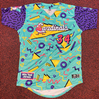 Authentic LJ Jones IV game-worn #34 size 46 Springfield Cardinals 90's Teal Jersey worn during the September 8th and 9th, 2023 games against the Tulsa Drillers to benefit The GYN Cancers Alliance.