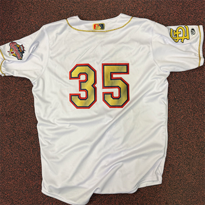 Ryan Murphy #35 size 48 Springfield Cardinals Championship Gold Jersey from the April 7th, April 10th, and April 11th 2026 games against the Tulsa Drillers benefiting the Springfield Sports Commission.
