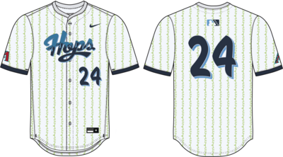 You are bidding on a 2025 Hillsboro Hops Game Worn Vine Stripe Jersey. The Hillsboro Hops are the High-A affiliate of the Arizona Diamondbacks.