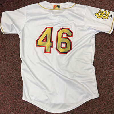Chen-Wei Lin #46 size 46 Springfield Cardinals Championship Gold Jersey from the April 7th, April 10th, and April 11th 2026 games against the Tulsa Drillers benefiting the Springfield Sports Commission.