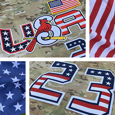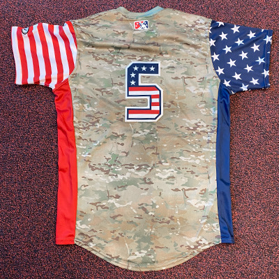 Authentic Arquimedes Gamboa game-worn #5 size 44 Springfield Cardinals specialty Patriotic Camo jersey worn during the June 17th and June 18th, 2023 games vs the Tulsa Drillers to benefit Missouri State ROTC.