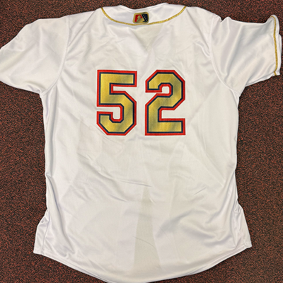 Ryan Campos #52 size 48 Springfield Cardinals Championship Gold Jersey from the April 7th, April 10th, and April 11th 2026 games against the Tulsa Drillers benefiting the Springfield Sports Commission.