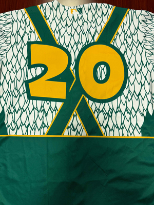 This jersey was unassigned during the Tulsa Drillers Chicken Dancers Nights from Thursday, May 15th to Sunday, May 18th 2025 at ONEOK Field. This jersey is #20 and is a size 48 and proceeds will help support the Tulsa Drillers Foundation.