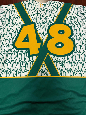 This jersey was unassigned during the Tulsa Drillers Chicken Dancers Nights from Thursday, May 15th to Sunday, May 18th 2025 at ONEOK Field. This jersey is #48 and is a size 50 and proceeds will help support the Tulsa Drillers Foundation.