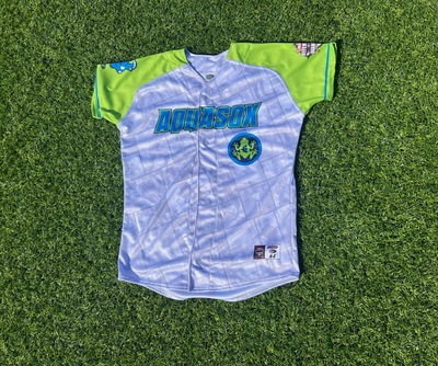 Worn by AquaSox Manager Ryan Scott on 6/10/23. Size 46. Jersey will be washed and autographed after the game.