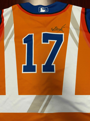This jersey was signed and worn by pitcher, #17 Jorge Benitez during the Tulsa Drillers Highway Safety Awareness Night on Thursday, May 1st 2025 at ONEOK Field. This jersey is a size 46 and proceeds will help support Safe Kids Tulsa.