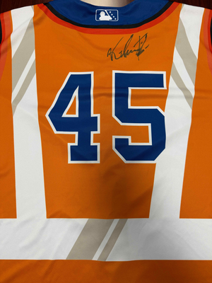 This jersey was signed and worn by pitcher, #45 Kelvin Ramirez during the Tulsa Drillers Highway Safety Awareness Night on Thursday, May 1st 2025 at ONEOK Field. This jersey is a size 48 and proceeds will help support Safe Kids Tulsa.