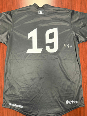 This jersey was signed by pitcher, #19 Kelvin Bautista during the Tulsa Drillers "Hogwarts" Night on Saturday, September 13th 2025 in celebration of the Harry Potter book series. This autographed jersey is a size 46. Proceeds of this auction will help support the Tulsa Drillers Foundation.