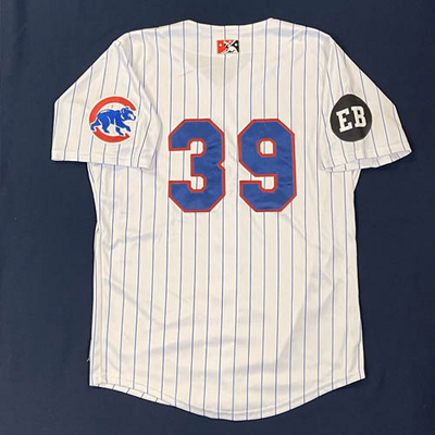 Myrtle Beach Pelicans 2015 LET'S PLAY TWO #39 Size 48 Clubhouse Issued Jersey. Worn during the 2nd Game of any Doubleheader during the 2nd Half of 2015 to celebrate Ernie Banks and his iconic "Let's Play Two" phrase.
