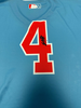 This jersey was signed by pitcher, #4 Jerming Rosario during the Tulsa Drillers Independence Week, honoring America's Independence, from Tuesday, July 1st to Thursday, July 3rd 2025 at ONEOK Field. This jersey is a size 44 and proceeds will help support the Eagle Ops Foundation.