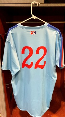 Jacksonville Jumbo Shrimp Jaxpos Fauxback Jersey #22 Size 46 Jersey worn on May 8, 2021 by P Braxton Garrett.