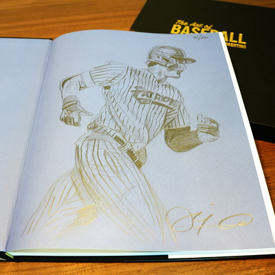 Book of baseball watercolor paintings by renowned sports artist James Fiorentino including an exclusive sketch drawing of Yankees No. 3 prospect Spencer Jones on the inside of the book autographed by James Fiorentino. The auction benefits the Greater Somerset County YMCA and their work to strengthen our community through comprehensive programs and services.