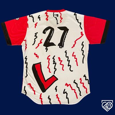 Authentic Game Worn Lansing Lugnuts 2024 Kids Designed #27 Jersey. Size XL. Worn by Mitch Myers who was drafted out of Pittsburgh in the 12th round of the 2021 draft by the Oakland Athletics. Donated by the Lansing Lugnuts. All proceeds go towards Hurricane Helene Relief efforts in WNC.