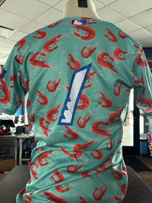 This auction is for our one of a kind shrimp-inspired Margaritaville jersey.