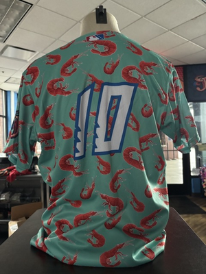 This auction is for our one of a kind shrimp-inspired Margaritaville jersey.