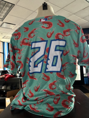 This auction is for our one of a kind shrimp-inspired Margaritaville jersey.