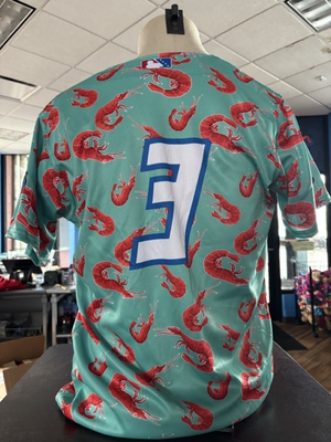 This auction is for our one of a kind shrimp-inspired Margaritaville jersey.