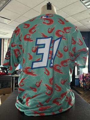 This auction is for our one of a kind shrimp-inspired Margaritaville jersey.
