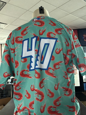 This auction is for our one of a kind shrimp-inspired Margaritaville jersey.