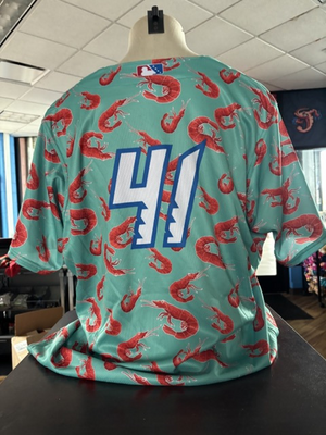This auction is for our one of a kind shrimp-inspired Margaritaville jersey.