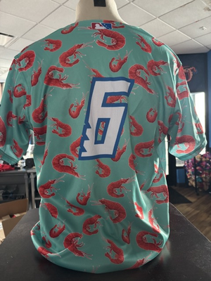 This auction is for our one of a kind shrimp-inspired Margaritaville jersey.