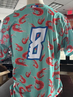 This auction is for our one of a kind shrimp-inspired Margaritaville jersey.