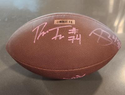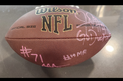 You are bidding on a Football Signed by Oregon Ducks Stars Jeremiah Johnson, Dave Iuli, Aydin Breland, and Alex Harkey, valued at $250. Proceeds of this auction benefit Emeralds Senior VP Chris Bowers' Men Wear Pink of Eugene Fundraising Campaign. This annual campaign benefits the American Cancer Society. Thank you for your support! No refunds, returns, or exchanges.