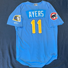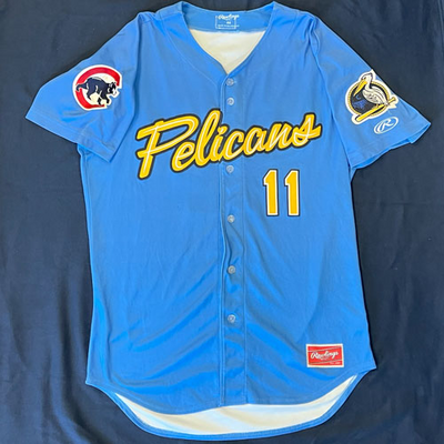 Myrtle Beach Pelicans 2019-2024 Alternate Blue #11 Size 44 Game Worn Jersey worn by Aramis Ademan (2019), Andrew Gold (2022), Rafael Morel (2023), Alexis Hernandez/Owen Ayers (2024). Email dbailey@myrtlebeachpelicans.com to request player nameplate to be sent with jersey.
