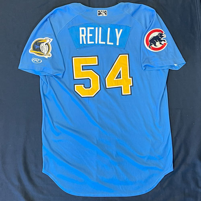 Myrtle Beach Pelicans 2019-2024 Alternate Blue #54 Size 46 Game Worn Jersey worn by Daniel Palencia (2021), Wally Soto (2022), Branden Noriega/Jefferson Rojas/Felix Stevens (2023), Vince Reilly (2024). Email dbailey@myrtlebeachpelicans.com to request player nameplate to be sent with jersey.
