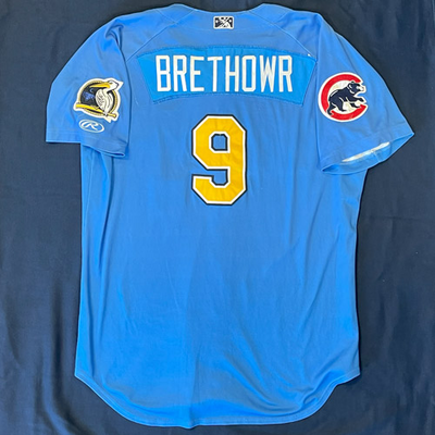 Myrtle Beach Pelicans 2019-2024 Alternate Blue #9 Size 48 Game Worn Jersey worn by Miguel Amaya (2019), Jose Albertos/Yeison Santana/Christian Franklin (2021), Porter Hodge/Moises Ballesteros (2022), Cade Horton/Juan Mora (2023), Andy Garriola/Ivan Brethowr (2024) . Email dbailey@myrtlebeachpelicans.com to request player nameplate to be sent with jersey.