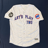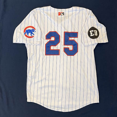 Myrtle Beach Pelicans 2015 LET'S PLAY TWO #25 Size 48 Clubhouse Issued Jersey. Worn during the 2nd Game of any Doubleheader during the 2nd Half of 2015 to celebrate Ernie Banks and his iconic "Let's Play Two" phrase. Worn by Mariano Duncan.