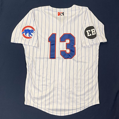 Myrtle Beach Pelicans 2015 LET'S PLAY TWO #13 Size 46 Clubhouse Issued Jersey. Worn during the 2nd Game of any Doubleheader during the 2nd Half of 2015 to celebrate Ernie Banks and his iconic "Let's Play Two" phrase.
