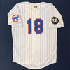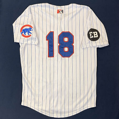 Myrtle Beach Pelicans 2015 LET'S PLAY TWO #18 Size 48 Clubhouse Issued Jersey. Worn during the 2nd Game of any Doubleheader during the 2nd Half of 2015 to celebrate Ernie Banks and his iconic "Let's Play Two" phrase. Worn by Zach Cates.