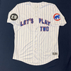 Myrtle Beach Pelicans 2015 LET'S PLAY TWO #32 Size 48 Clubhouse Issued Jersey. Worn during the 2nd Game of any Doubleheader during the 2nd Half of 2015 to celebrate Ernie Banks and his iconic "Let's Play Two" phrase. Worn by Duane Underwood Jr.
