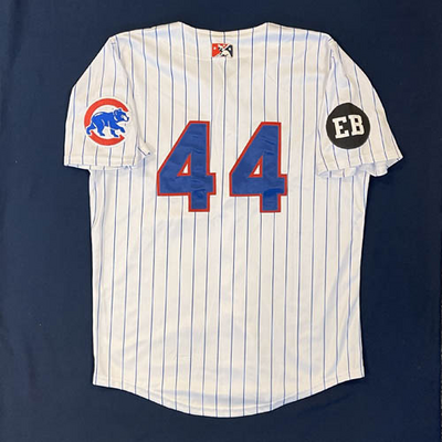 Myrtle Beach Pelicans 2015 LET'S PLAY TWO #44 Size 48 Clubhouse Issued Jersey. Worn during the 2nd Game of any Doubleheader during the 2nd Half of 2015 to celebrate Ernie Banks and his iconic "Let's Play Two" phrase.