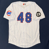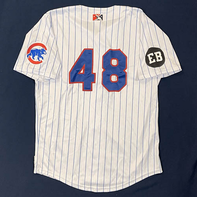 Myrtle Beach Pelicans 2015 LET'S PLAY TWO #48 Size 48 Clubhouse Issued Jersey. Worn during the 2nd Game of any Doubleheader during the 2nd Half of 2015 to celebrate Ernie Banks and his iconic "Let's Play Two" phrase.
