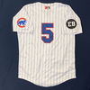 Myrtle Beach Pelicans 2015 LET'S PLAY TWO #5 Size 46 Clubhouse Issued Jersey. Worn during the 2nd Game of any Doubleheader during the 2nd Half of 2015 to celebrate Ernie Banks and his iconic "Let's Play Two" phrase.