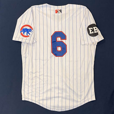 Myrtle Beach Pelicans 2015 LET'S PLAY TWO #6 Size 46 Clubhouse Issued Jersey. Worn during the 2nd Game of any Doubleheader during the 2nd Half of 2015 to celebrate Ernie Banks and his iconic "Let's Play Two" phrase. Worn by Mark Zagunis.